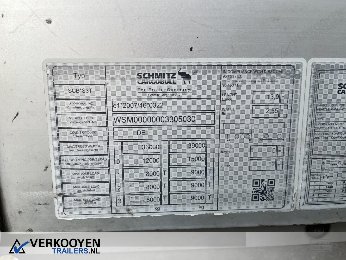 Schmitz Cargobull 3CB 3ST Schuifzeil Oplegger - Liftas - Laadklep - Schuifdak - Alcoa Oplegger specificaties